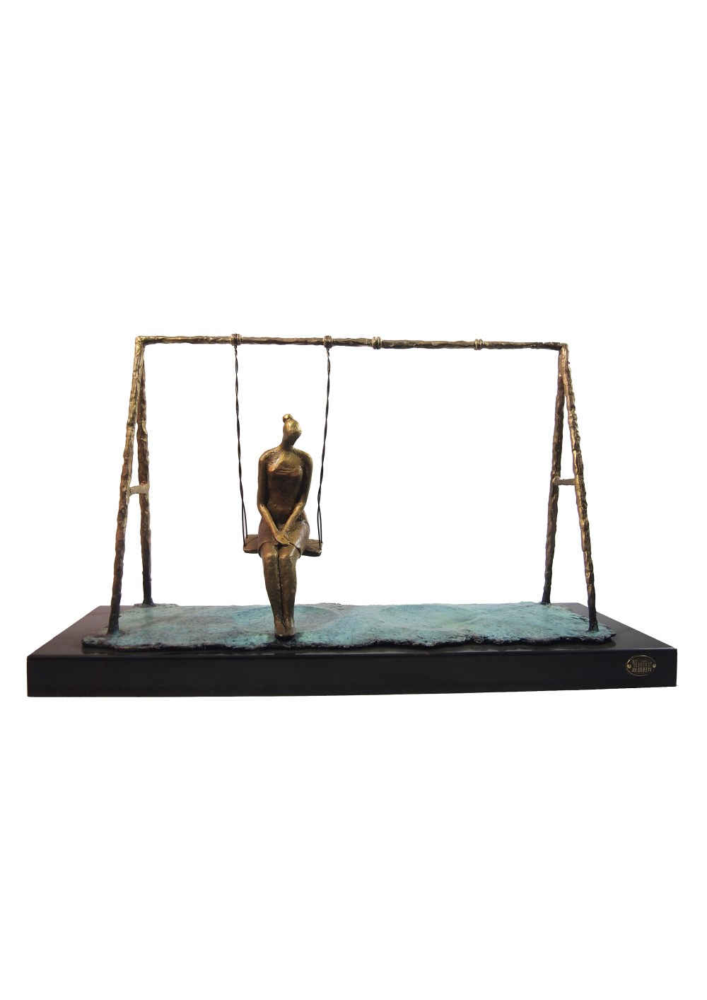 Bronze البرونزيات, Gold ذهبي, Marble الرخاميات, Masterpieces تحف, Melodies Collection مجموعة الألحان Swing أرجوحة Posted by magmaadmin on 11 September,201618 February,2018 A lady on a swing. Made of bronze and marble; this masterpiece measures 65×20×36 cm. تحفة من البرونز على قاعدة من الرخام لفتاة تتأرجح. القطعة تأتي بقياس 65×20×36 سم.