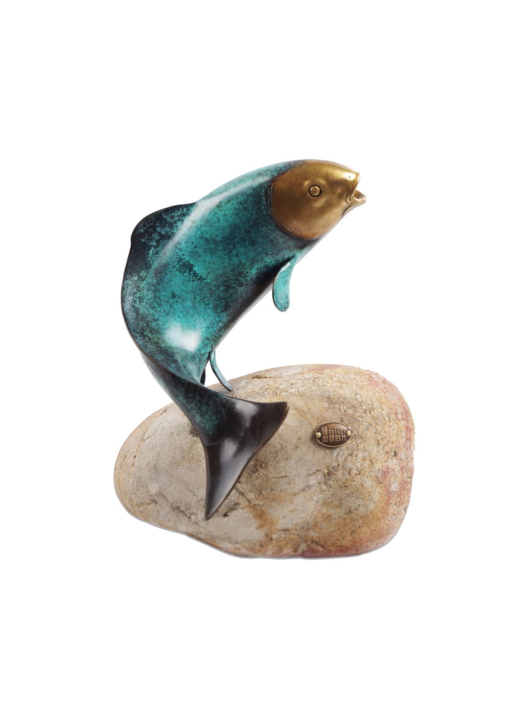Blue أزرق, Brass النحاسيات, Equatorial Collection المجموعة الإستوائية, Masterpieces تحف, Stone الحجريات The Gulf الخليج Posted by magmaadmin on 11 September,201619 January,2019 A blue fish made of bronze over a stone. It measure 29×25×43 cm. سمكة زرقاء من البرونز على حجر بأبعاد 29×25×43 سم.